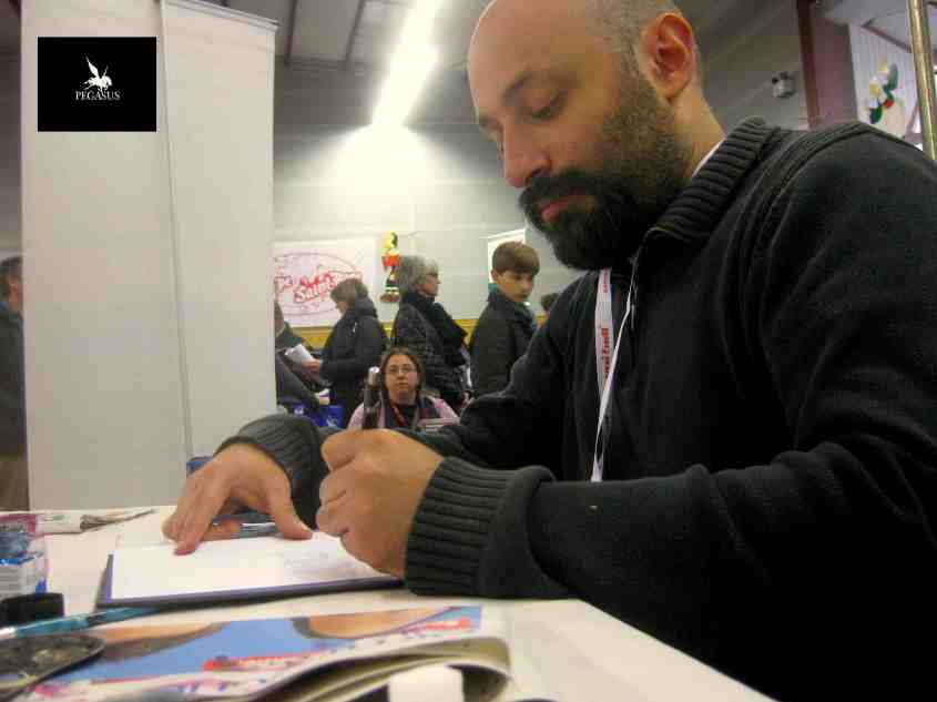 Comme chaque année, je me suis rendu au salon BD de Rouans pour dédicacer mes albums de bande dessinée. Stéphane Perger, Vincent Pompetti, Aurélien Morinière et Emmanuel Reuzé avec qui j’ai eu des collaborations étaient également présents. La Guerre des Gaules (Tartamudo éditions) a été reçu avec enthousiasme et a connu un grand succès populaire !