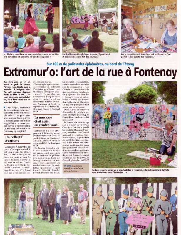 Une seconde exposition regroupant une sélection de I LOVE STREET ART dont mon mail art a été proposée au public lors du Festival Extramur’O les 30 juin et 1er juillet 2012.