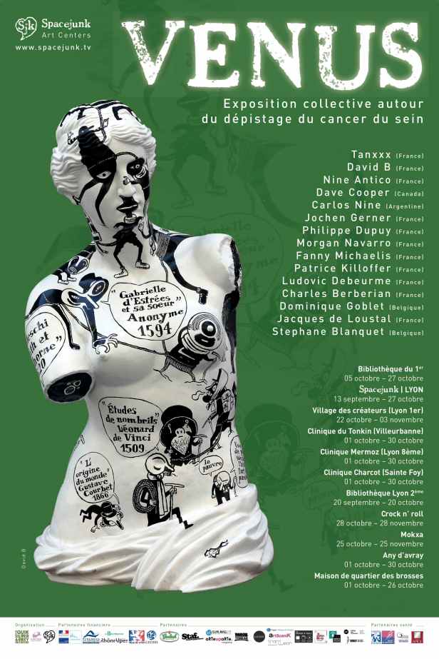 Dans le cadre du projet Vénus, chaque année des artistes internationaux se prêtent au jeu de la customisation d’un support afin de récolter des fonds pour des associations caritatives œuvrant autour du cancer du sein. Pour la troisième édition du projet Venus, Spacejunk Art Centers a demandé à 150 artistes, dont moi, de peindre des photos de bustes féminins tirés sur toile. Les œuvres seront ensuite montées sur châssis puis exposées dans divers lieux à Lyon. Une vente aux enchères viendra clore cet événement. C’est la troisième fois que je participe à ce projet en tant que peintre mais aussi comme soutien presse avec Paris Tonkar magazine. J’ai réalisé une peinture sur toile et j’ai choisi de vous montrer les différentes étapes jusqu’à la finalisation. Ma peinture montée sur châssis sera visible au moment de son exposition.