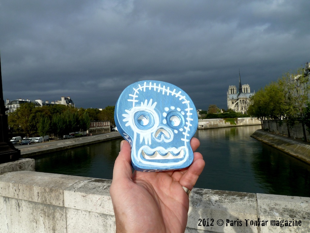 Back from my trip in Alsace, I took the opportunity to stick a Man at work and I also met Pioc PPC who posed with one of my Skulls. Ludovic from Napoleon gallery, where I exhibit paintings continuously, has posed with the Skull he had just buy.