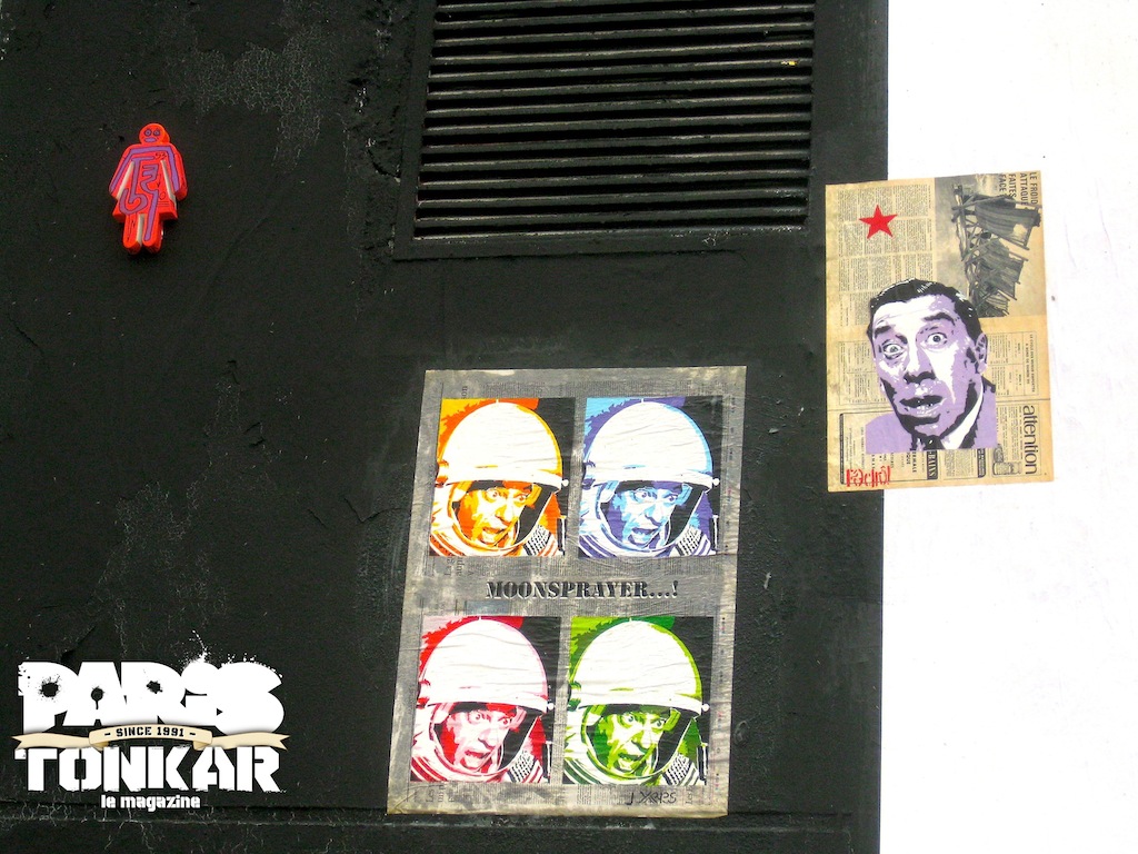 Rain, glue and walls! In June, in Paris for an exhibition at the gallery « Frichez nous la paix ! », SP38 found Yarps and Pedro! his old comrades of the Zen Copyright for a morning collage … Mister Pee and Zoe and me have joined for a morning urban collage!