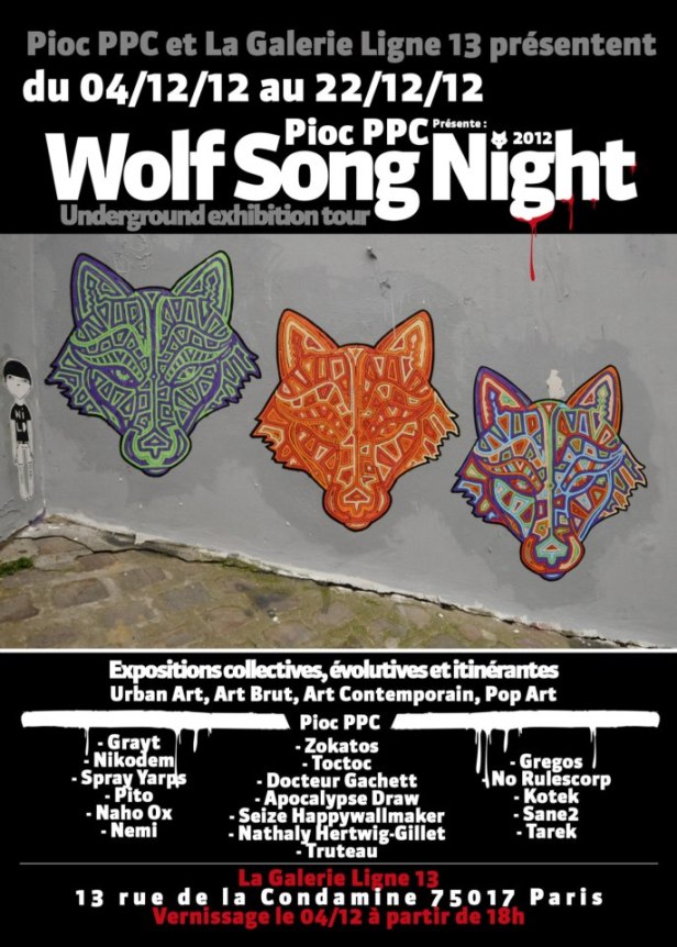 I will participate in this exhibition around the artist Pioc PPC. This is the last show of the tour Wolf Song Night!