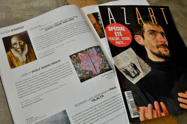 The exhibition « Wolf Song Night » initiated by Pioc continues its ride in France and stops at Gap … Magazines talk! And this tour has been a resounding success. I exhibit some paintings.