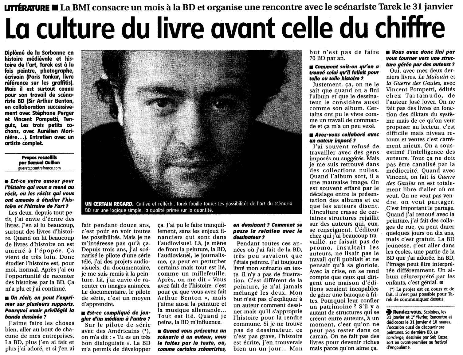 Lors de mon passage dans la Bibliothèque de Gueret où j’ai eu le plaisir de partager ma passion des livres et de la BD avec des enfants des classes primaires et les bibliothécaires, le journal La Montagne m’a interviewé.