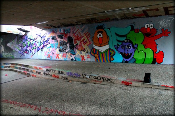 Ce week end, j’ai réalisé une peinture murale intitulée Un monde fou 2013 en compagnie de graffeurs de Rennes et de Saint-Brieuc : Moner et Skekio SM ainsi que Midj et Averi WCK. J’ai utilisé de la bombe et de l’acrylique au rouleau avec des collages en bois.