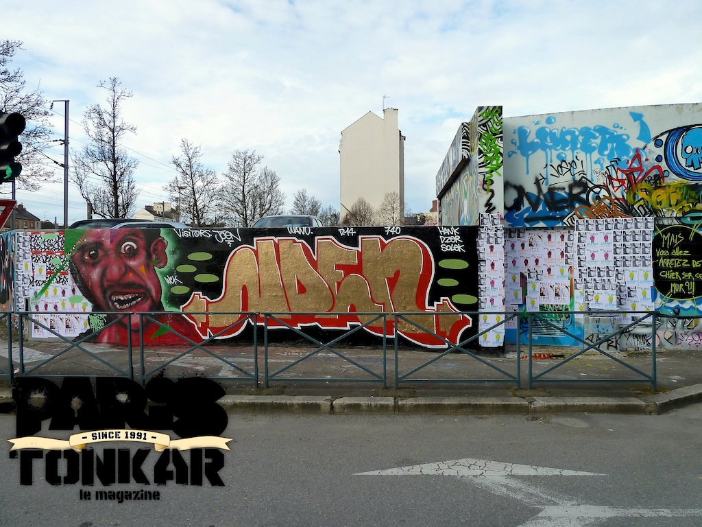 Yesterday the weather was day in the sun … Avery, a graffiti artist of Saint Brieuc, has proposed to join him for painting a wall. We made this mural two hours and a half: I pasted posters at both ends of the wall to create this funny feeling in the wall « Chinese » …