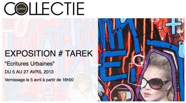 Dans le cadre du finissage de l’exposition « Ecritures Urbaines », Tarek réalisera une performance in situ le vendredi 26 avril. A l’issu de cette performance l’œuvre réalisée sera vendue.