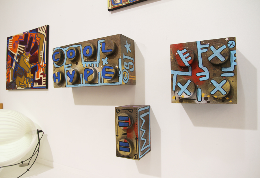 Under the finishing of exhibition :: Ecritures Urbaines :: I made a performance in the gallery: painting a wall of Lego with Posca, acrylic and collage. The wall has been broken down into several pieces available for sale in the gallery.