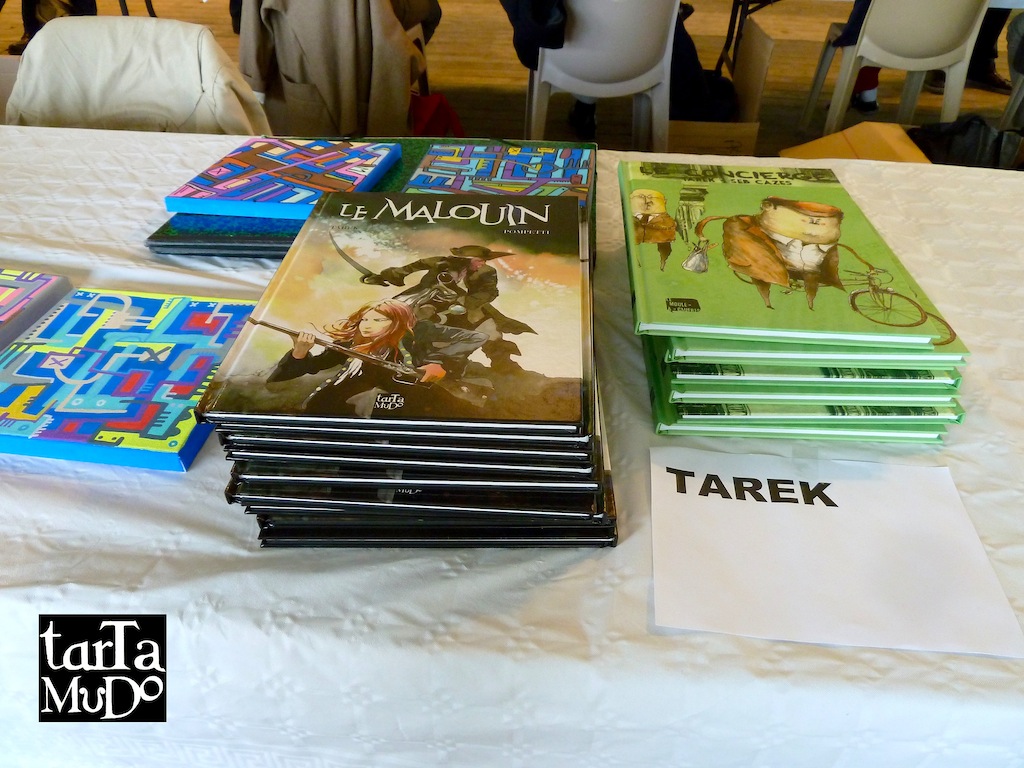 During the book fair of Fismes, I dedicated my comics and I presented some paintings … I also made collages in the village and met classes for two days. An excellent souvenir and warm hospitality from the team!