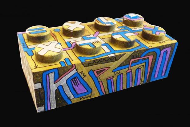 Ce LEGO faisait partie d’une œuvre monumentale (mur de LEGO) dont chaque morceau a été repris et peint après le démontage.