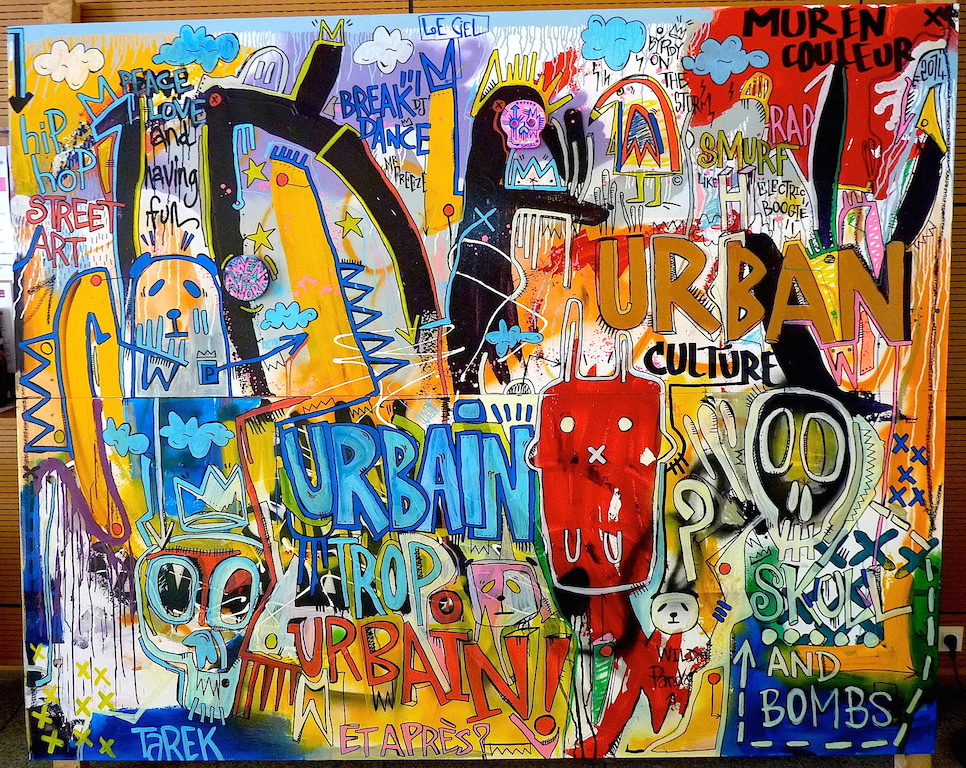Techniques : Acrylique, pastel gras, bombe aérosol, Poscas, encres + collages sur bois