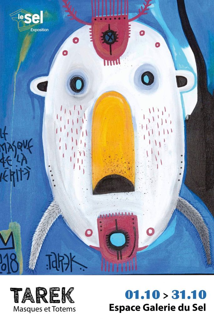 L’idée de customiser des masques ou d’en peindre n’est pas récente dans le travail de Tarek puisqu’il avait déjà réalisé quelques pièces dès 2010. Lors de son séjour au Cameroun, en 2017, il a peint des murs et partagé sa passion avec d’autres peintres camerounais. Sur place, il a pu faire l’acquisition de nombreux masques africains qui ont été des sources d’influence importantes pour son travail (séries Tribal et Hommes de bois). Depuis peu, il a entamé une nouvelle série sur les totems !