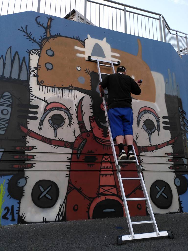 From September 16 to 17, I was in residence not far from the city of Bordeaux to paint there: I was invited by the Mur du Souffle Festival.