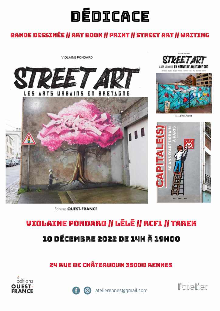 Ayant décidé de quitter ce lieu pour vivre de nouvelles aventures graphiques ailleurs, ils ont choisi de transformer leur espace de travail en galerie pour cette fin d’année. Deux expositions sont prévues en décembre : « Gotham is back! » sur le thème de New York et Batman et « Tout doit disparaître, la dernière de l’année ! » la dernière pour finir en apothéose avec des surprises et des cadeaux pour nos visiteurs et collectionneurs. Une séance de dédicace est également prévue avec Violaine Pondard, RCF1, Lélé et Tarek autour du Street art, du Writing et de de la bande dessinée. Le 10 décembre de 14h à 19h : une date à retenir absolument !