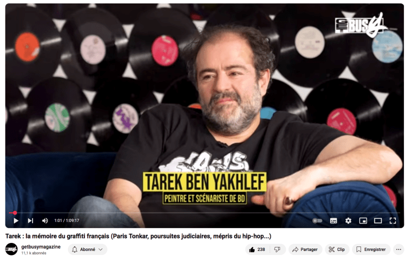 Dans ce nouvel épisode de GET BUSY, Tarek Ben Yakhlef, figure légendaire du graffiti, nous embarque avec lui jusqu’aux racines de l’art urbain. Il se confie sur les risques qu’engendre la pratique, aborde les liens profonds qui unissent l’art et politique, et revient également sur l’importance de la notion de transmission, ou encore le regard méprisant envers le hip-hop dans les années 80. Une discussion brute et inspirante pour les passionnés d’art, de culture urbaine et d’histoire, dans laquelle il nous éclaire sur l’impact de Paris Tonkar, la réputation controversée, voire sulfureuse du graff, tout en nous partageant des anecdotes personnelles captivantes.
