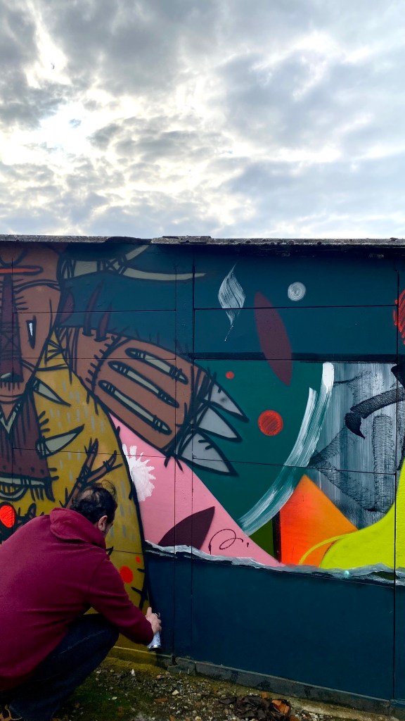 Lors de mon passage à Lisieux pour réaliser une fresque sur le MUR, j’ai peint un mur avec Homek visible par tous les passants en pleine ville.
