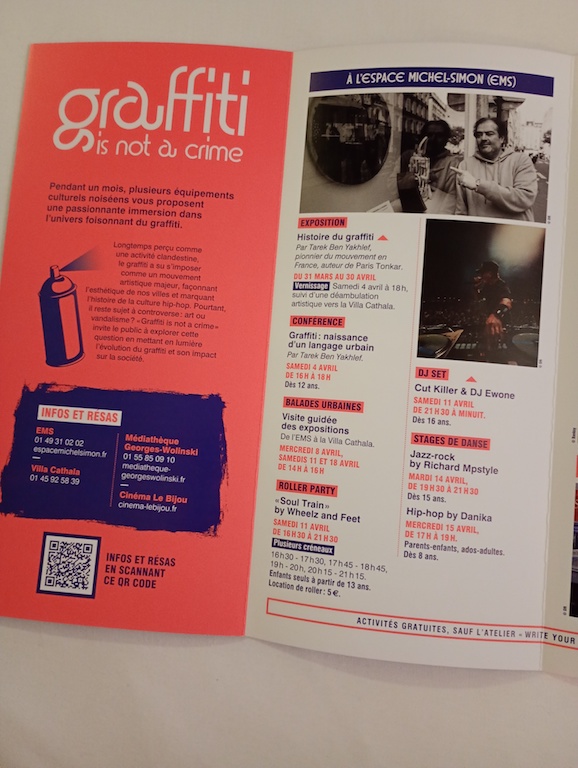 Du 31 mars au 30 avril, plongez dans l’univers du graffiti et de la culture hip-hop à travers Graffiti is not a crime ! Exposition sur les origines du graffiti par Tarek à l’Espace Michel-Simon Ville de Noisy-le-Grand.