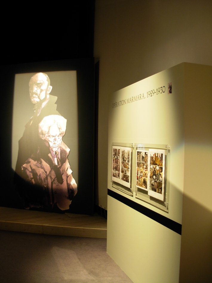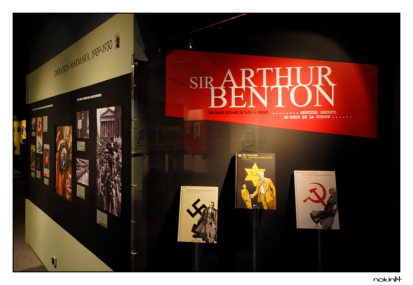 The Sir Arthur Benton exhibition was held at the Caen Peace Memorial in 2008. It put into perspective the original plates of the comic book series and many objects, posters, and period documents related to the story. It was a great opportunity to discover or delve deeper into this shadow war waged by the Allied and German secret services. In a space of 180 m2, the very large public (180,000 visitors) was able to discover the series in its entirety.