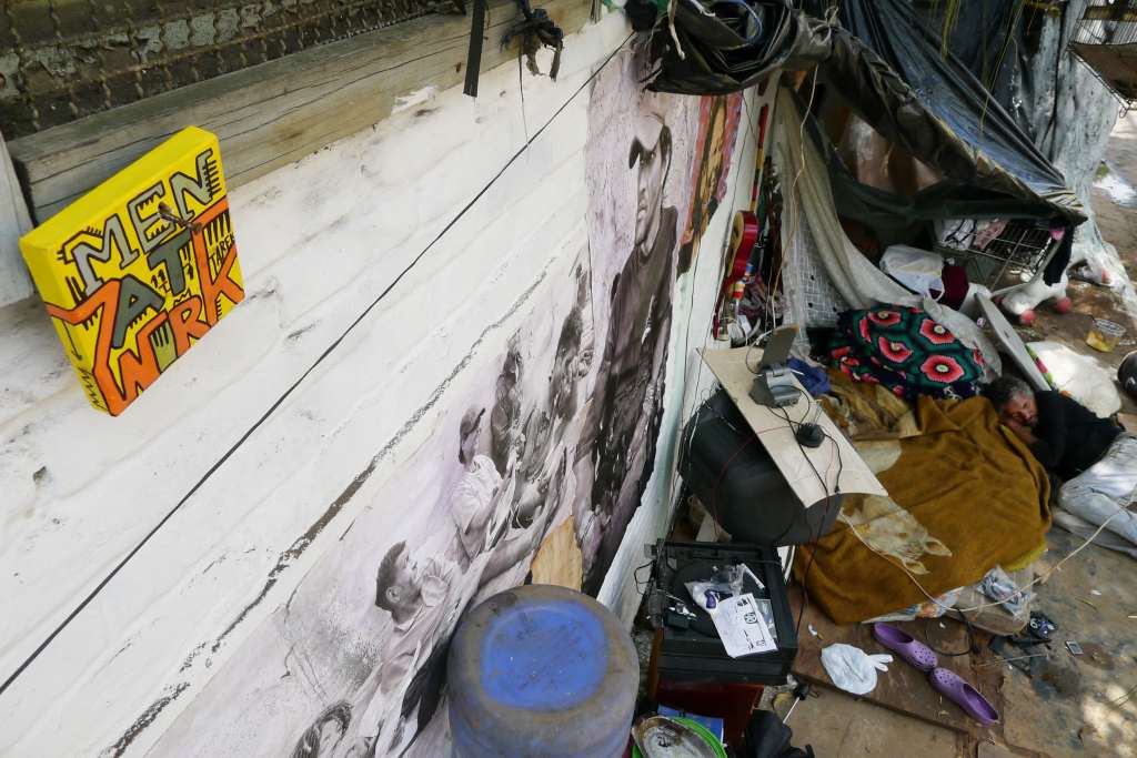 Collage de personnages masculins que j’ai peints puis posés dans la rue en plein jour. Chaque objet peint est numéroté et signé : 111 personnages seront collés dans la rue ! Avant le collage, une photo de l’objet peint est systématiquement prise dans un endroit avec un minimum de mise en scène. Je réalise en parallèle une série de Men at work sur toile ayant le même thème ainsi que des collages de personnages sur toile. Mes collages sont parfois posés dans la rue par des artistes avec qui je collabore comme Gregos, Bastek ou encore des personnes qui veulent participer à mon projet artistique. Villes où des collages ont été effectués : France (Angoulême, Arras, Audincourt, Avignon, Beauvais, Bourges, Brest, Caen, Chauny, Clermont-Ferrand, Fismes, Gentilly, Ivry-sur-Seine, Laval, Le Mans, Luchapt, Lyon, Malakoff, Marseille, Merlieux, Monluçon, Moulins, Nantes, Paris, Puteaux, Quimper, Rennes, Saint-Malo, Saint-Brieuc, Saint-Denis, Saint-Pierre-des-Corps, Strasbourg, Vanves et Vitry-sur-Seine), Beijing, Berlin, Bruxelles, Cayenne, Genève, Montréal, New York, Rio de Janeiro, Rome, San Francisco, Sao Paulo et Los Angeles.